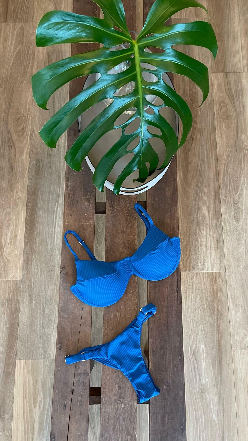 Meia taça texturizado com alça ajustável e bojo removível. A calcinha também possui ajuste lateral e é meio fio.